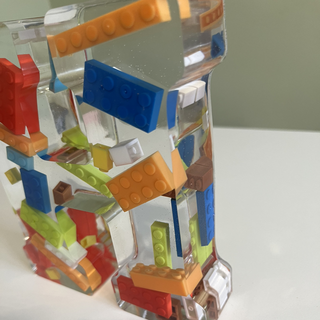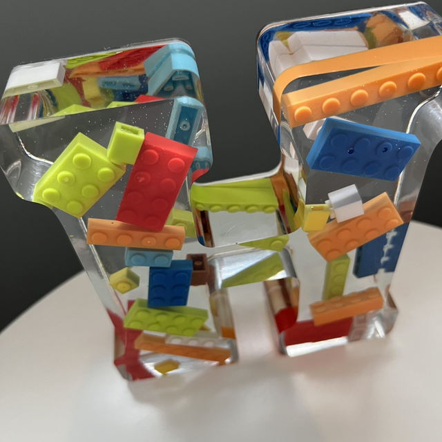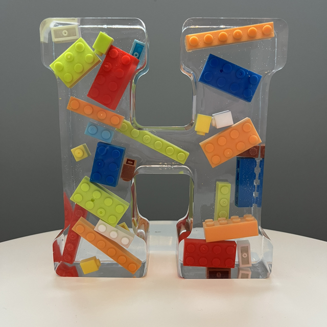 Each letter will be unique and contain a range of Lego style bricks with a range of colours as shown.