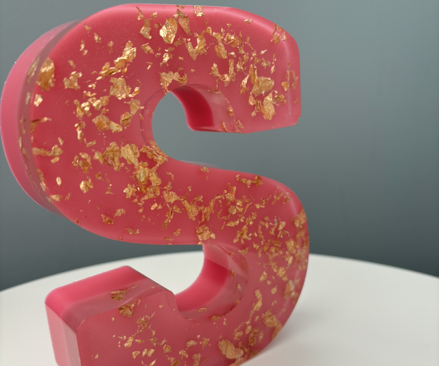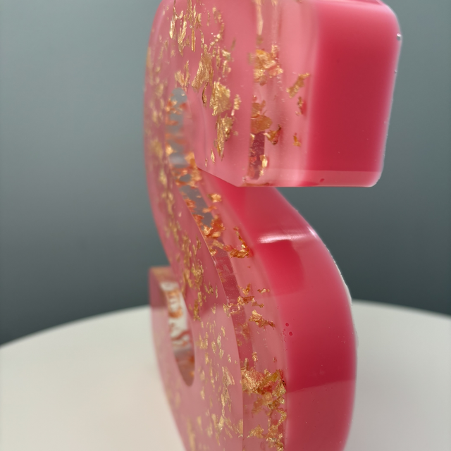 Large resin letter in pink and gold